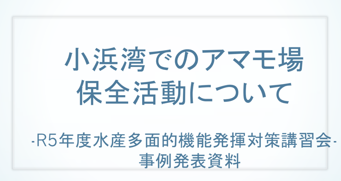 アマモ場や藻場の保全活動、海岸に漂着したごみの調査や回収を通じて、海の豊かさや生き物のすみかを未来につなぐため、地域や参加者が一緒になって行動し、きれいで健やかな海を次世代に残す取り組みです。